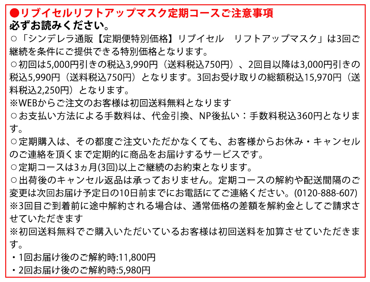 - 「シンデレラ通販【定期便特別価格】ナインテイルズ スピードリフト」は3回ご継続を条件にご提供できる特別価格となります。